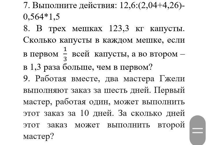 1. 12,6:(2,04+4,26)-0,564*1,5