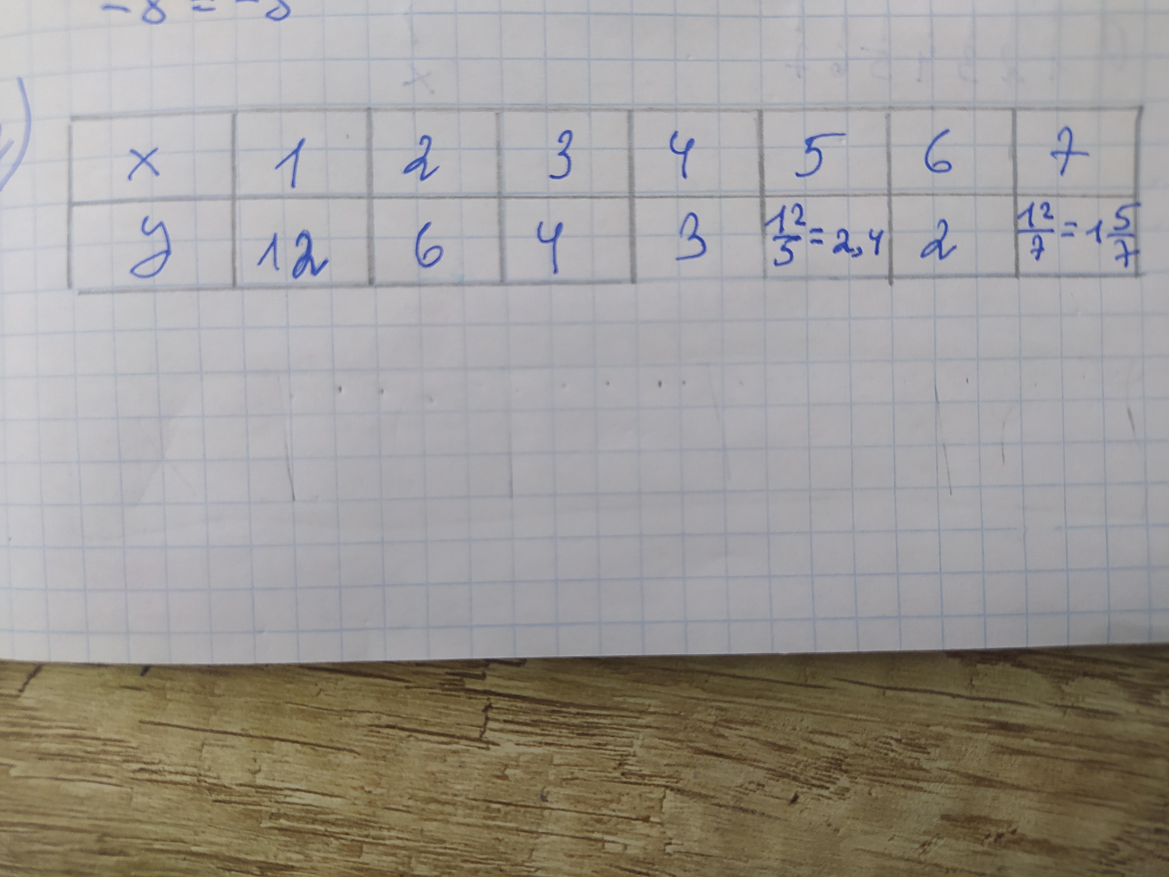 Функція задана формулою y=12/x, де x>0. Склади таблицю значень функції. Побудуй графік функції за даними таблиці.