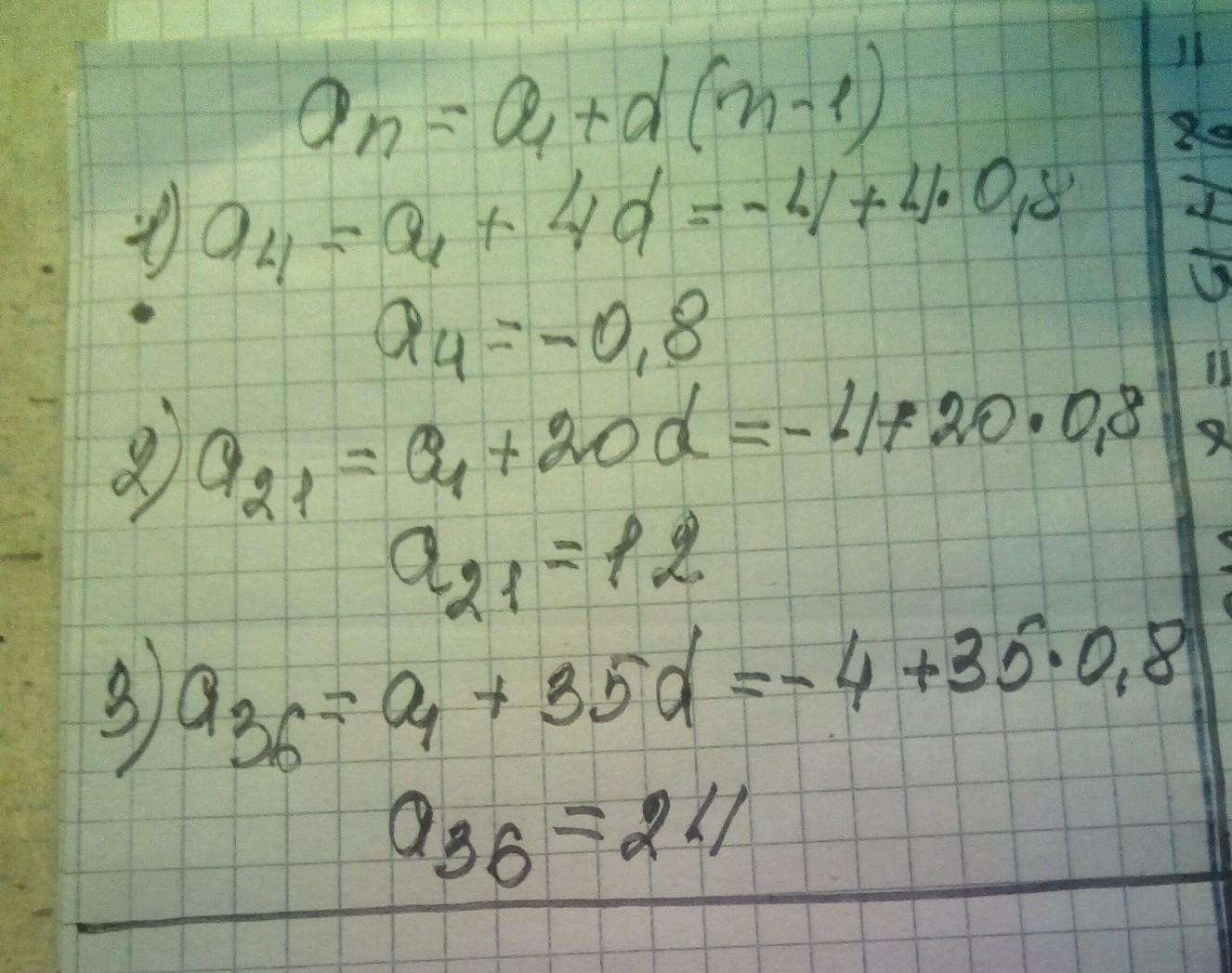 160. Перший член арифметичної прогресії а1 =-4, а різниця d=0,8. Знайдіть: 1) а4; 2) а21; 3) а36.