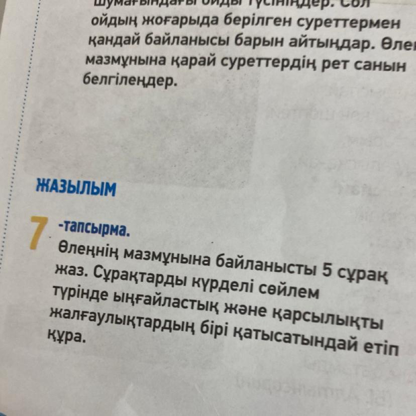 Өлеңнің мазмұнына байланысты 5 сұрақ
