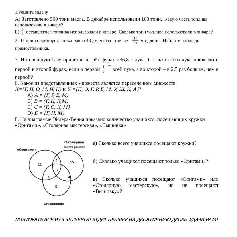 6. Какое из представленных множеств является пересечением множеств