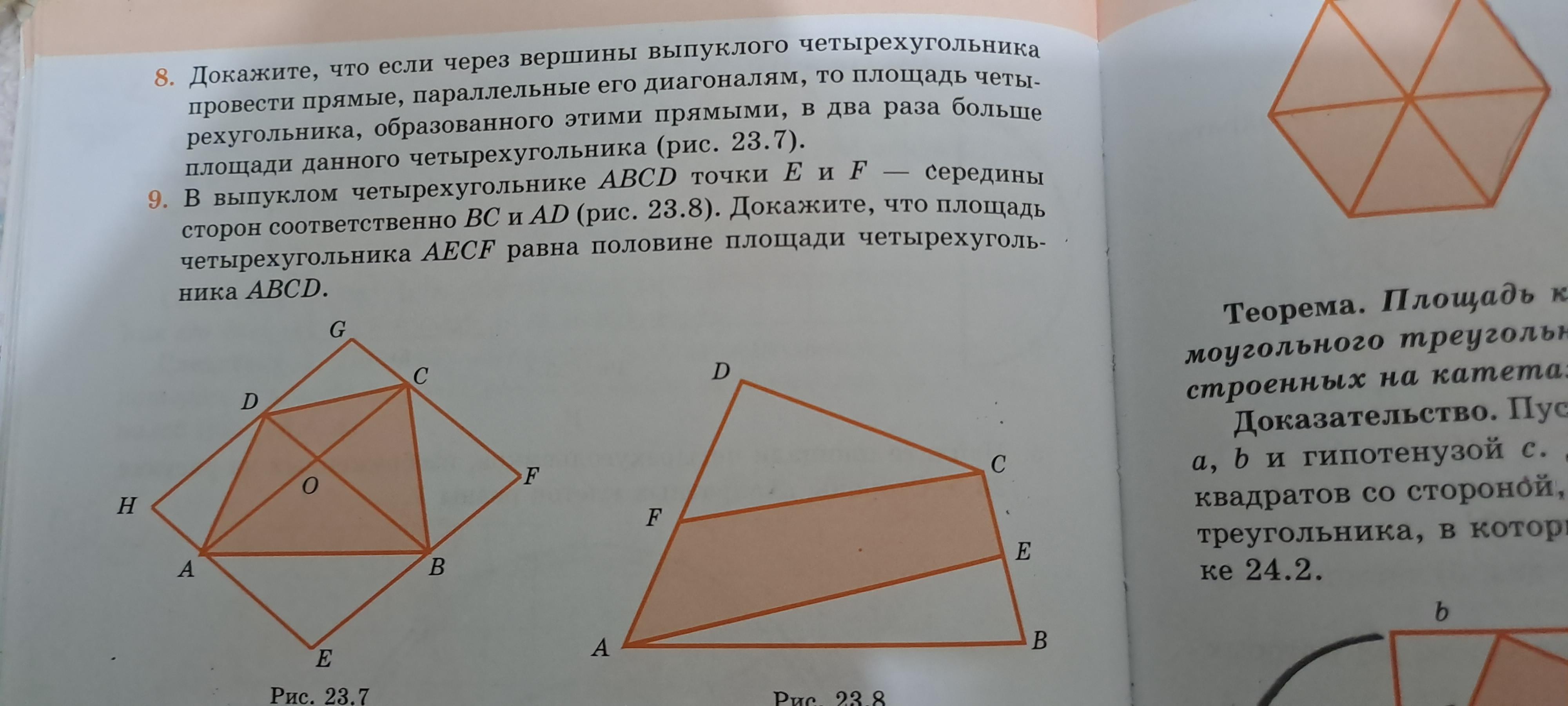 Докажите, что если через вершины выпуклого четырехугольника провести прямые, параллельные его диагоналям, то площадь четырехугольника, образованного этими прямыми, два раза больше площади данного четырехугольника