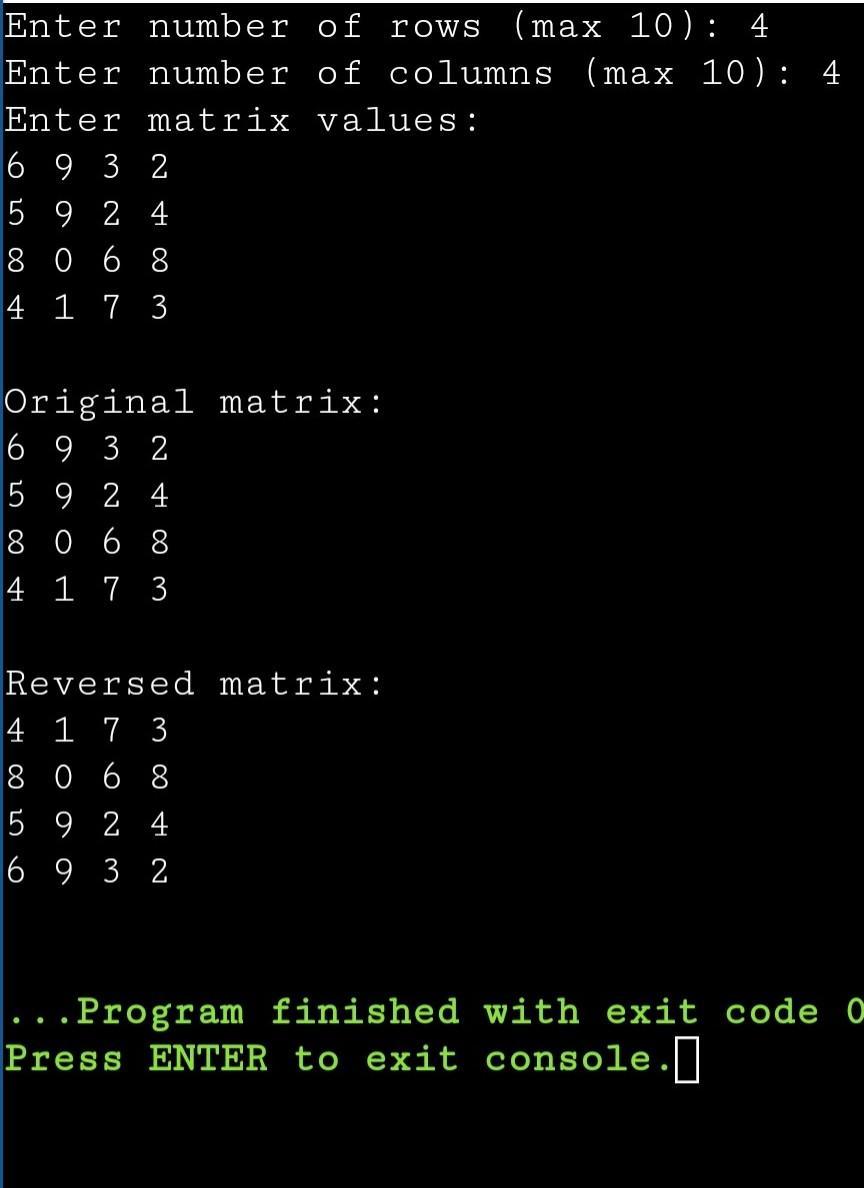 cout << "\nReversed matrix:\n";