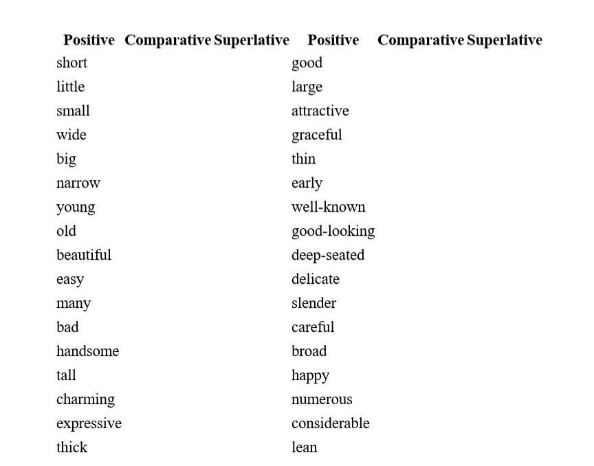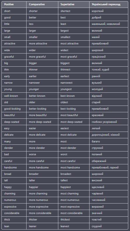 TASK 8. Утворіть ступені порівняння прикметників та прислівників, перекладіть їх українською мовою. Зверніть увагу на різні засоби утворення ступенів порівняння.