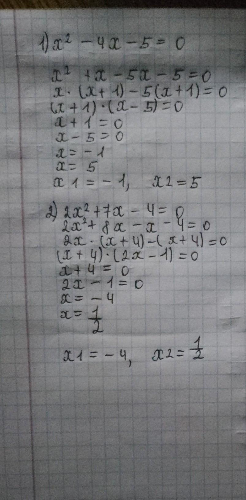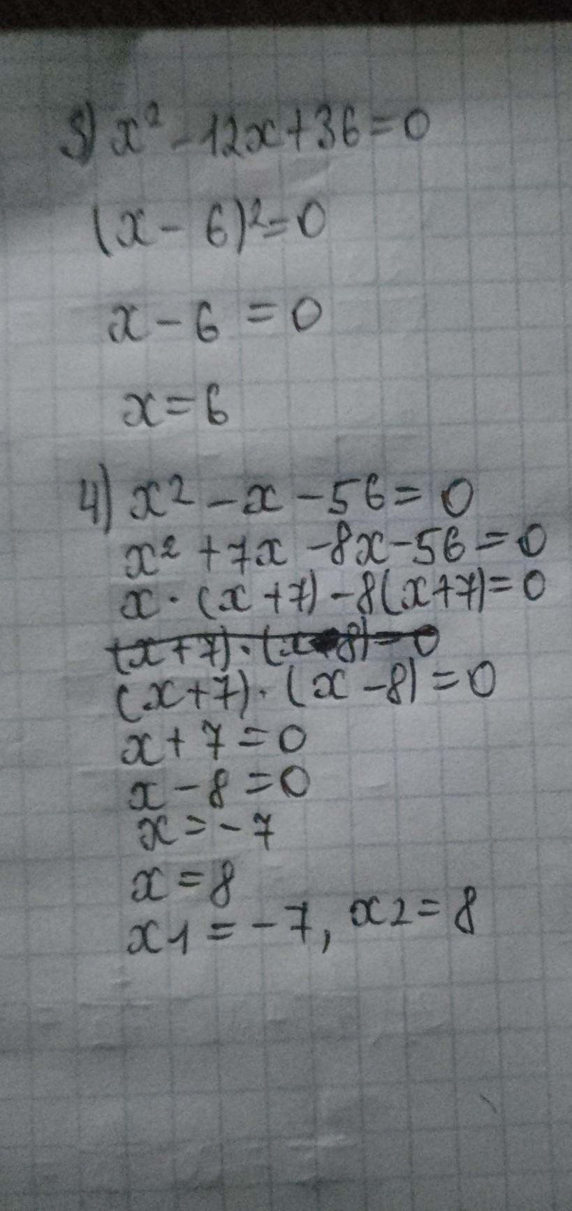813. Розв'яжіть рiвняння: 1) x² - 4x - 5 = 0; 3) x² - 12x + 36 = 0; 2) 2x² + 7x-4 = 0; 4) x²-x-56= 0.