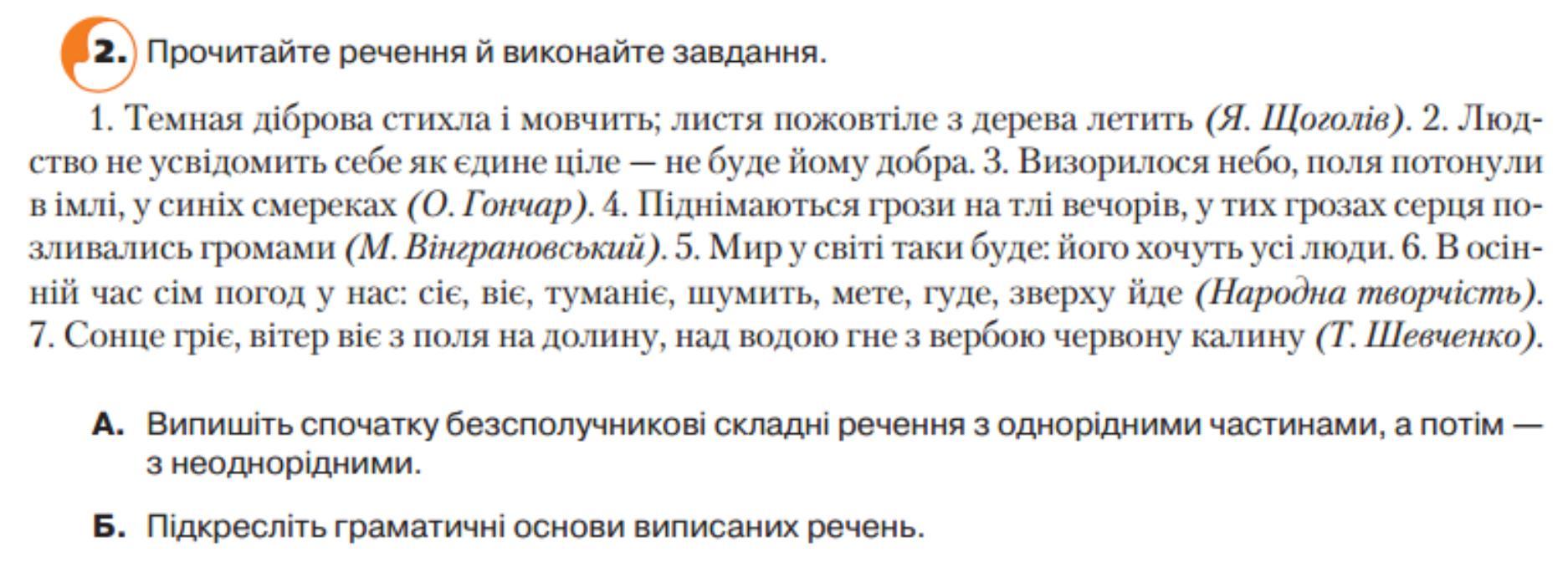 Срочно пожалуйста, даю 100 балов !!!!! Безсполучникове складне речення, завдання на фото