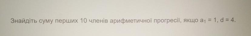 В данном случае, a1=1, d=4 и нам нужно найти сумму первых 10 членов прогрессии, то есть n=10.