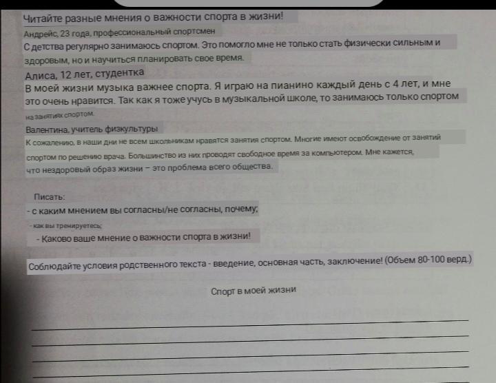 Спорт - это важная вещь в жизни. Спорт намного важнее музыки, даже если может музыка и лучше. Спорт улучшает здоровье, вы становитесь намного сильнее, у вас повышается иммунитет, становится малый шанс заболеть. Лично я занимаюсь спортом, по утрам я люблю побегать, ведь бег, ещё и утром, очень полезен, а перед бегом, я делаю небольшую разминку. Люди которые не занимаются спортом, хотя-бы иногда, может плохо закончится. В свободное время, я хожу в тренажерный зал, для поддержания своего веса и телосложения. Вместо вредных напитков, я пью молочные продукты, ведь они тоже улучшают иммунитет и телосложение. Утром, перед пробежкой, я завтракаю еду с белками. Спорт самое полезное, что есть в жизни, занимайтесь спортом, что-бы быть здоровым и сильным.
