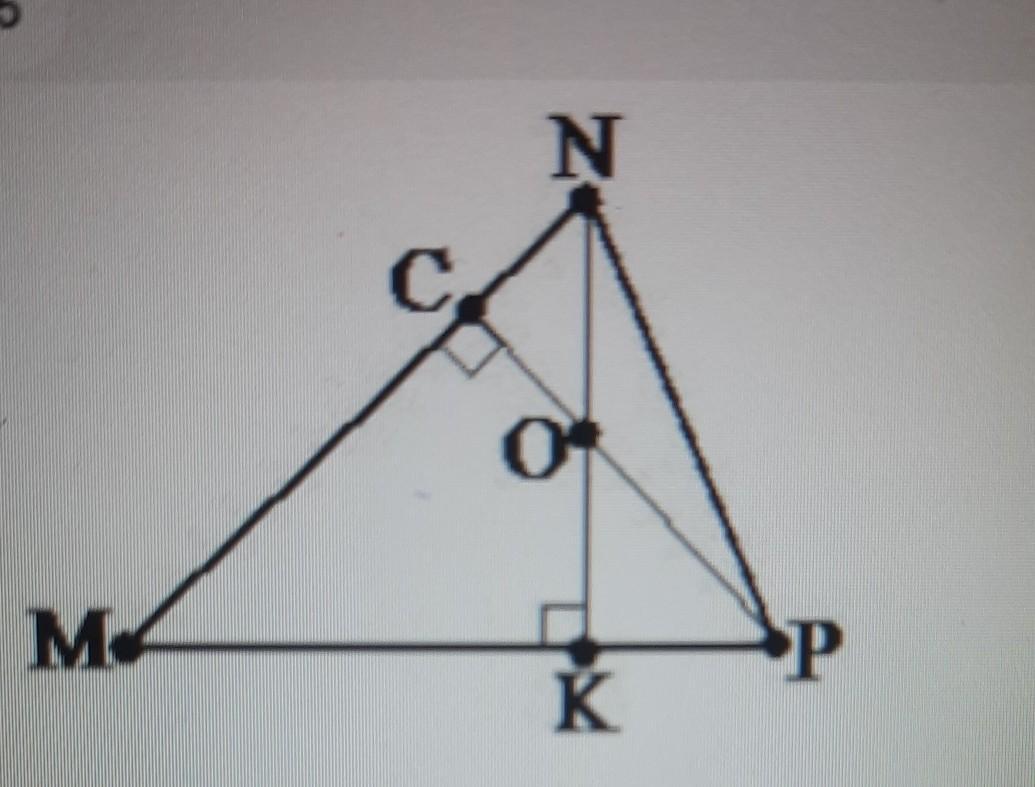 Висоти РС і NK трикутника МNP перетинаються в точці О. <NOP=140°. Знайдіть градусну міру кута M