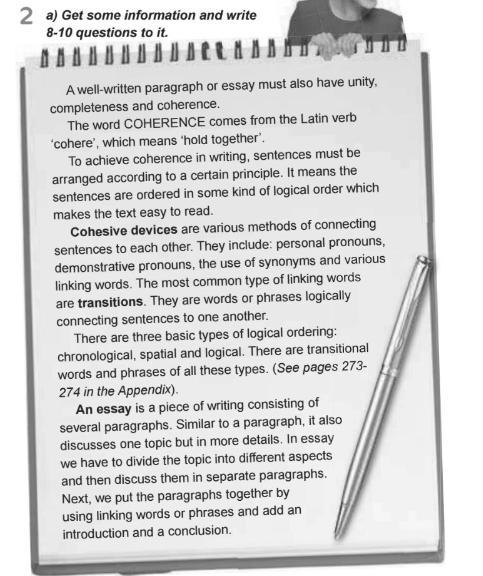 1)What are the three essential elements that a well-written paragraph or essay must have?