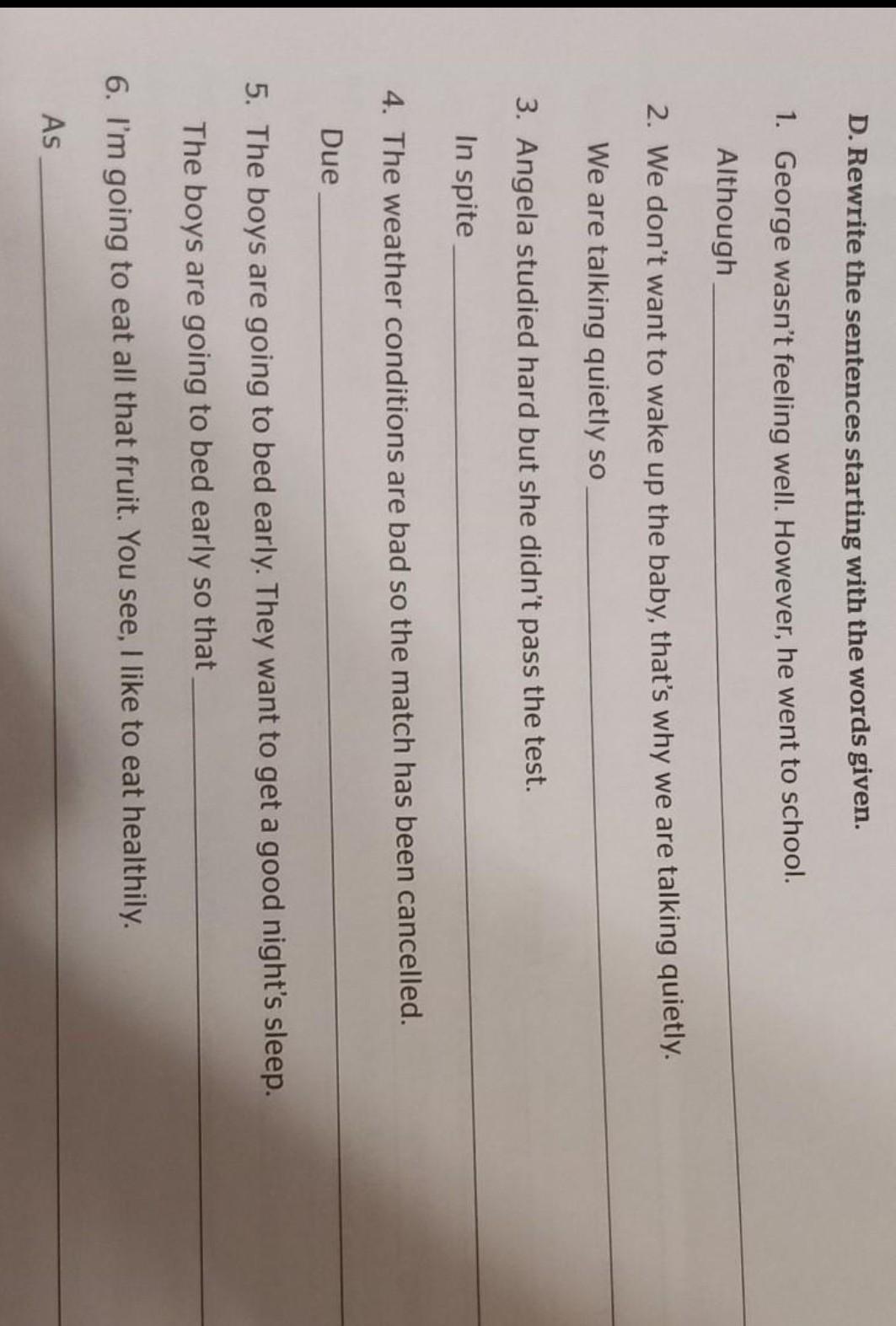 1) Although George wasn’t feeling well, he went to school