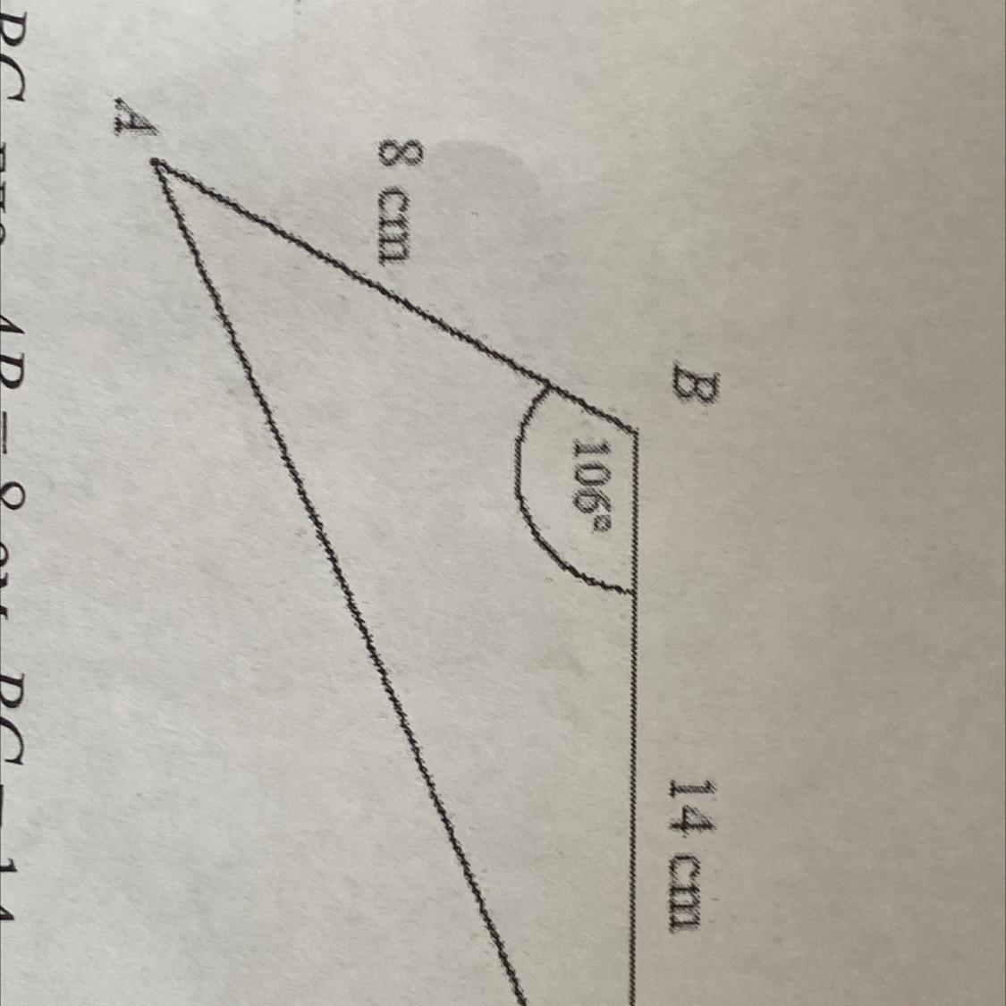 Дан треугольник ABC где AB = 8 см, ВС = 14 см, угол ABC = 1060