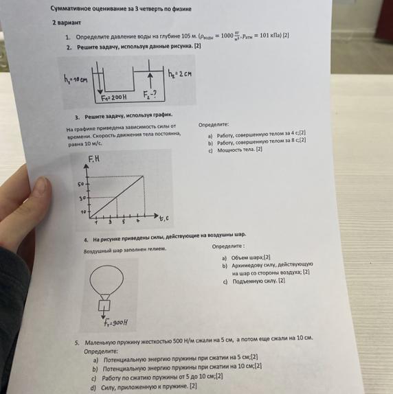 1. Определите давление воды на глубине 105 м. (Рводы = 1000, Ратм = 101 кПа) [2]