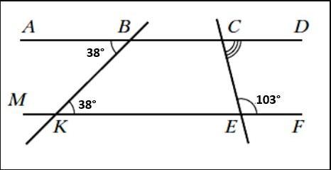 кут С= 103 градуси, як паралельний кут M= 180-38=142 градуси