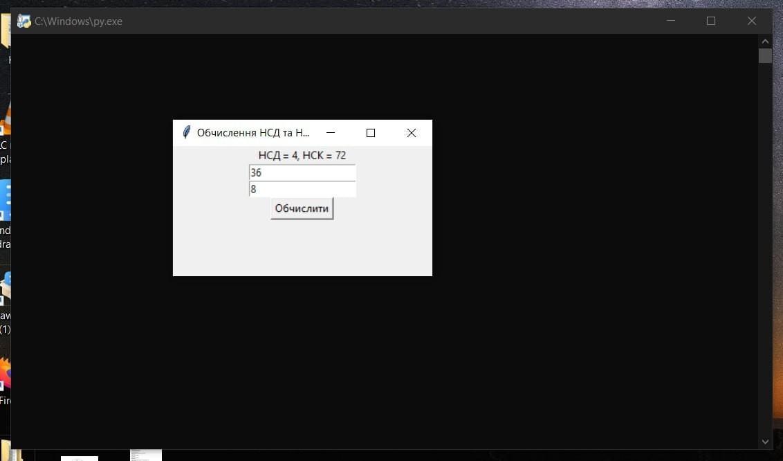nsk = int(edit1.get()) * int(edit2.get()) // nsd # Знаходимо найменше спільне кратне