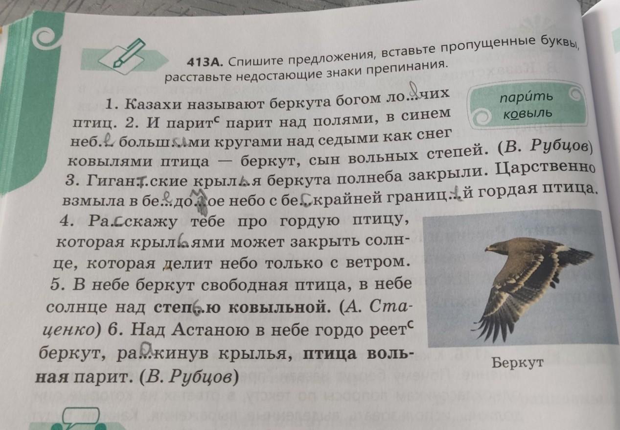 1ловчих.2парит-парит,большими кругами,сын.3гигантские крылья,бездонное,бескрайней границей,гордая птица.5в небе,беркут,свободная птица,над степью,ковыльной