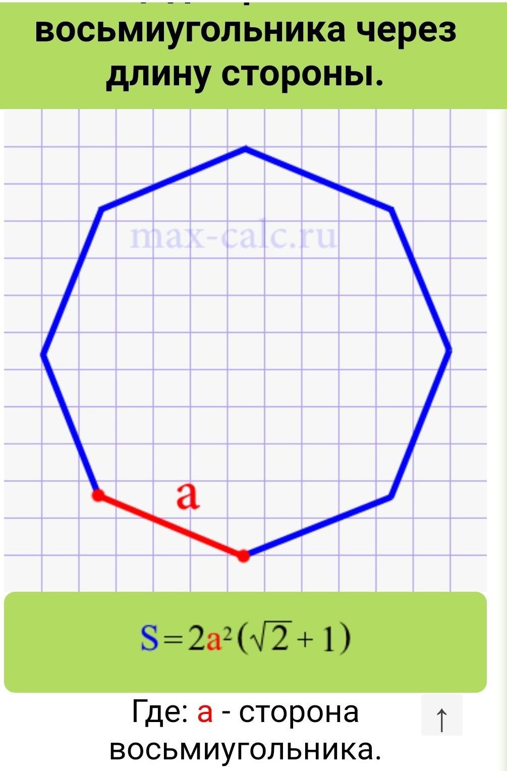 Сторона правильного восьмикутника дорівнює 8корень2 - корень2 см. Знайдіть його площу.