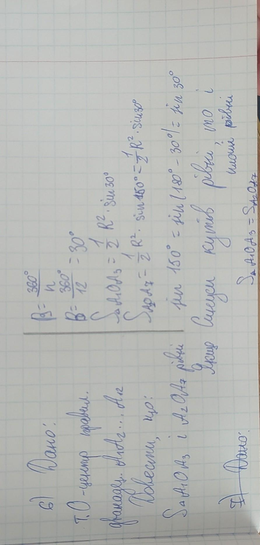 Точка О-центр правильного дванадцятикутника А1 А2 ... А12. Доведіть, що площі трикутників A1 0 A3 і А2 0 А7, рівні.