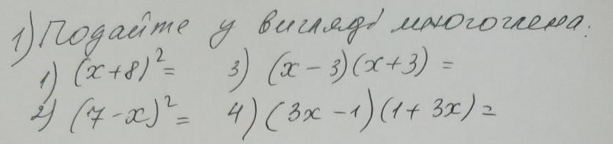 1) ( x + 8 )² = x² + 16x + 64 ; 3) ( x - 3 )( x + 3 ) = x² - 3² = x² - 9 ;
