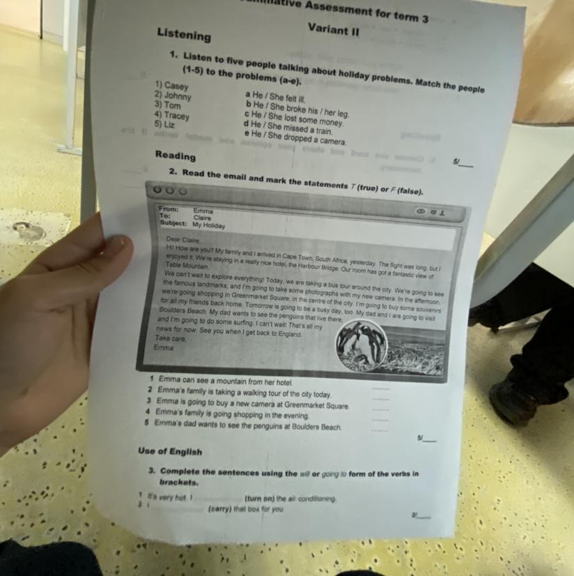 5 True - Emma's dad wants to see the penguins at Boulders Beach.
