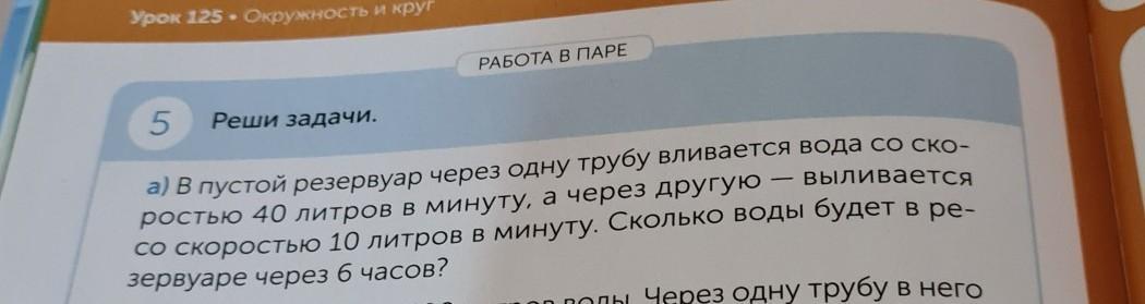 40-10=30 лтров в минуту в 6 часах 360 минут 360*30=10800 литров за 6 часов