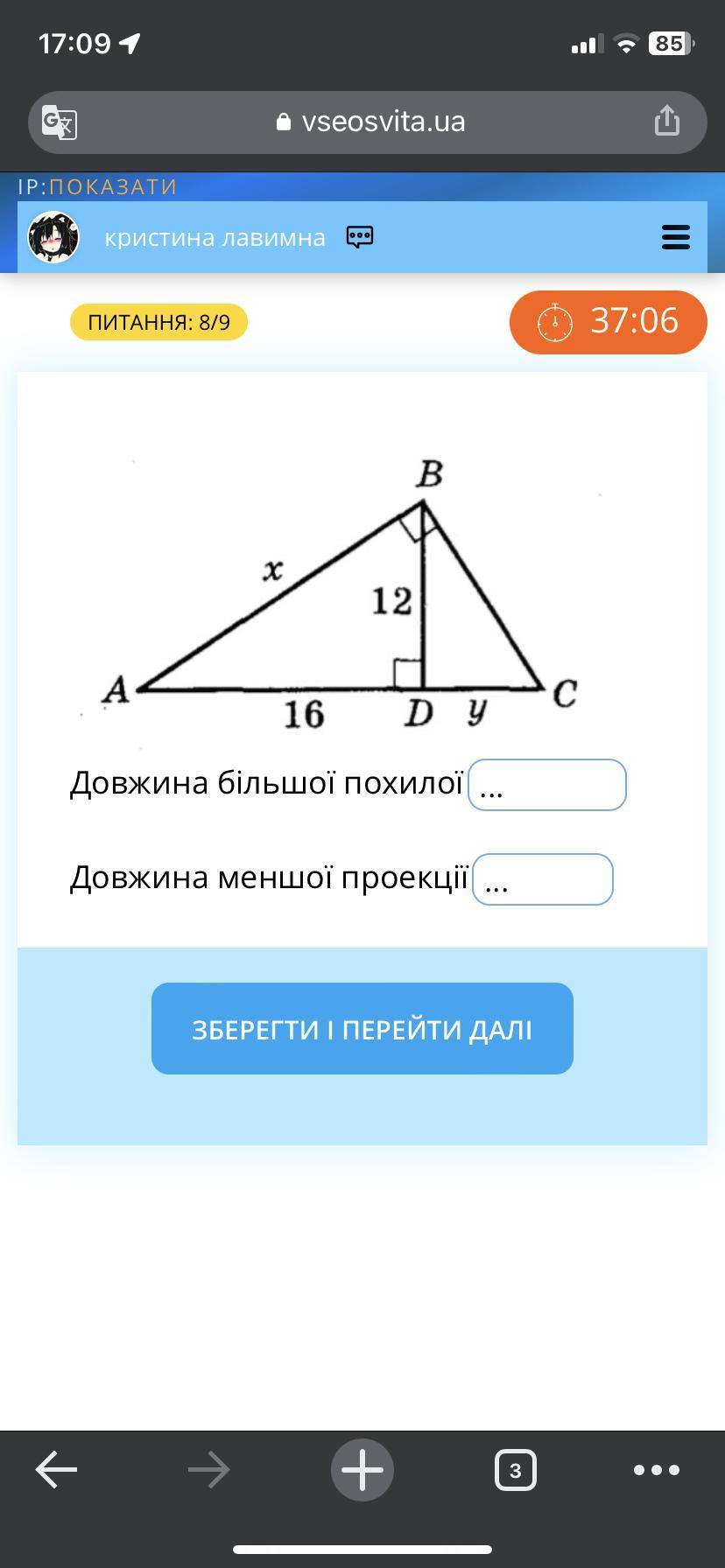 12²=16·CD ⇒ CD=144:16=9 ⇒ y=9