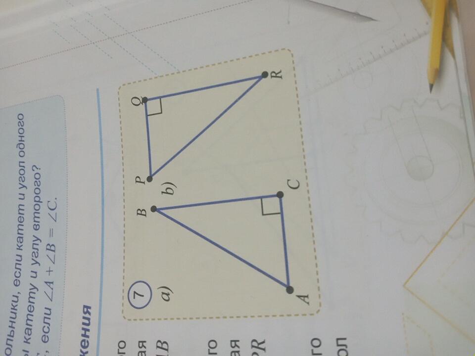 запишите гипотенозу и катеты прямоугольного треугольника ABC на рисунке 7а. Какая сторона этого треугольника длиннее: a)AB или BC; b)AB или AC