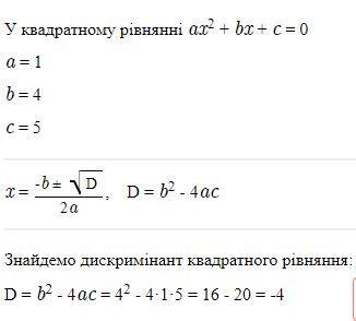 Відповідь: Немає коренів, бо дискримінант менше нуля.