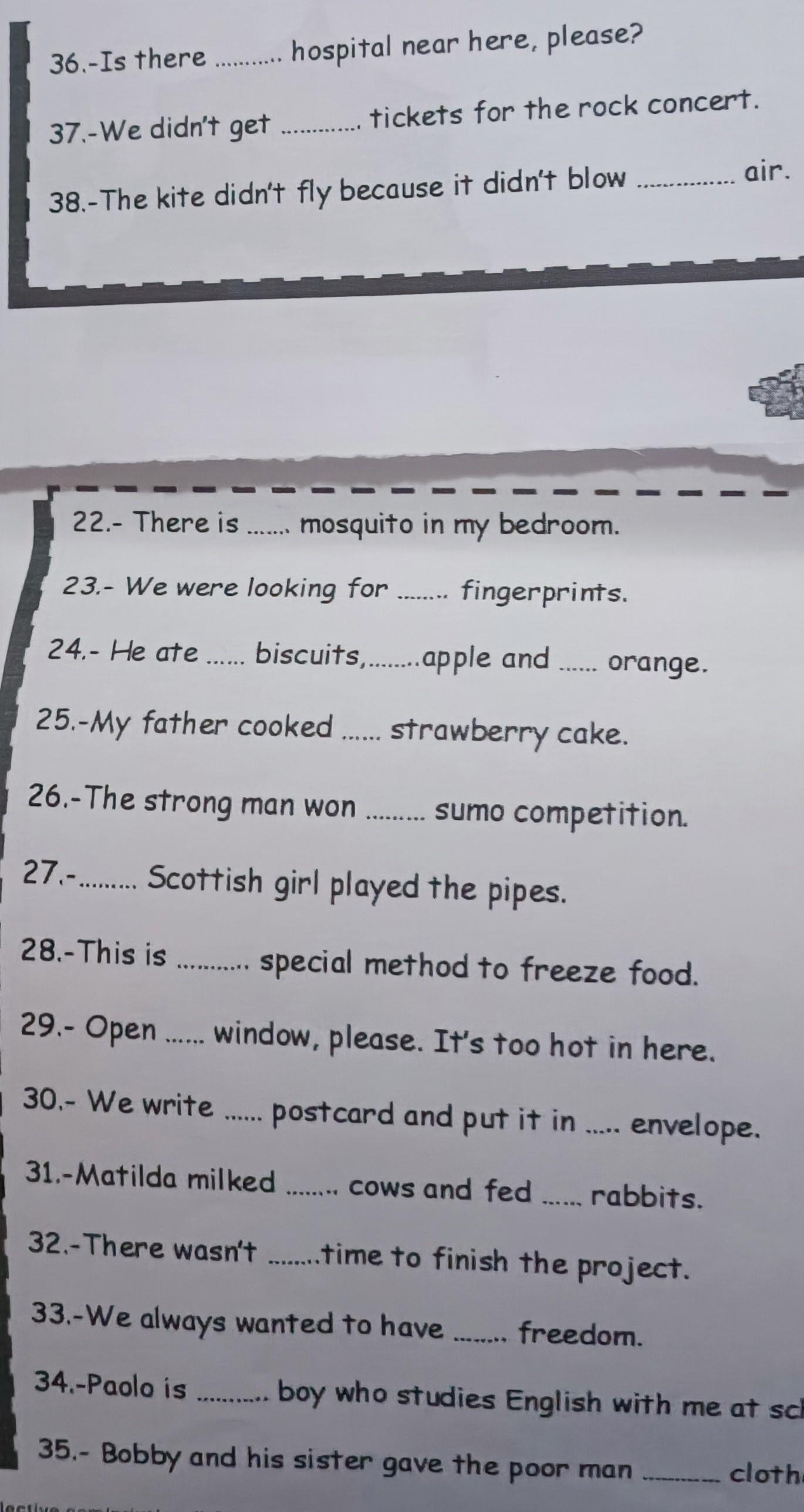 Надо вставить a,an,some,any в придложения указанные на картинке , и в сообщении, пожалуйста ,правильно.