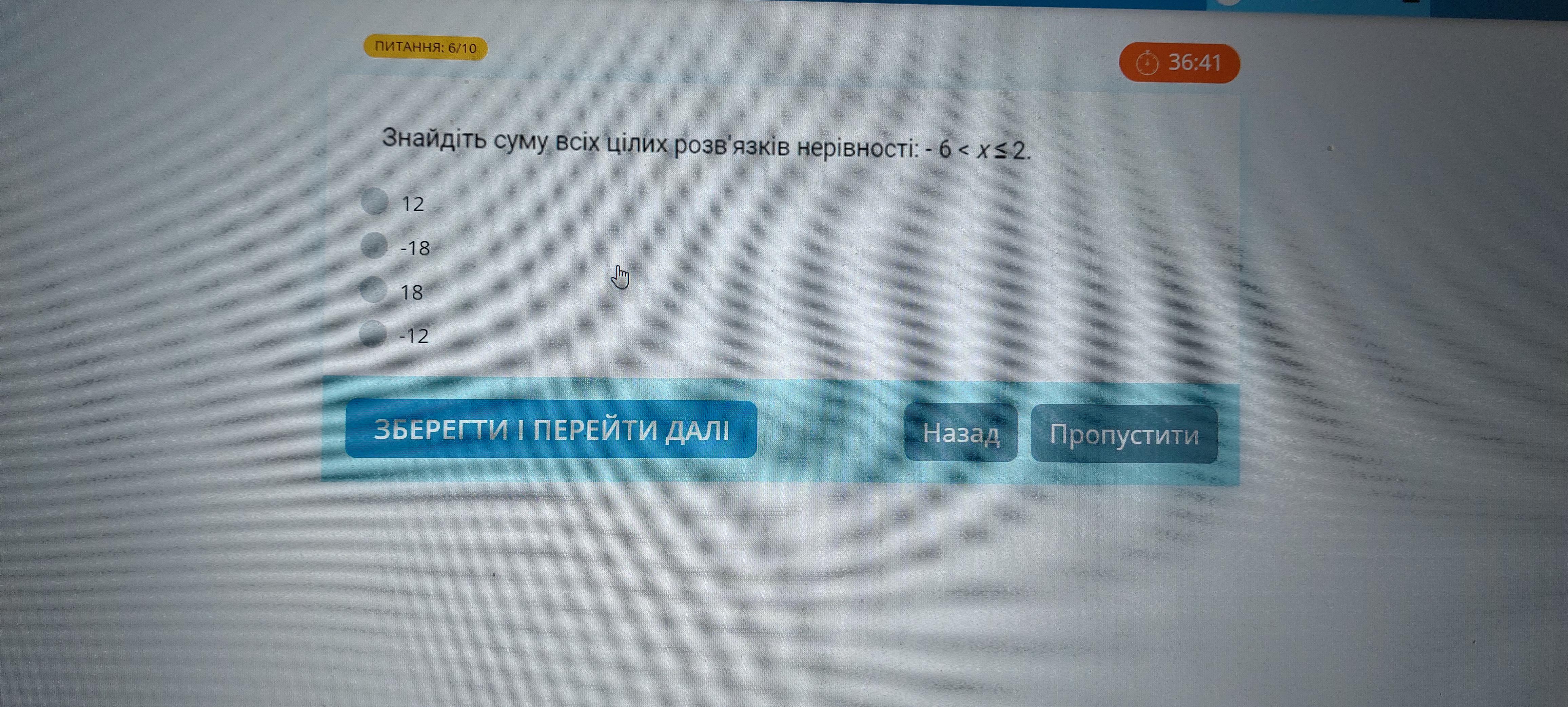 -5 - 4 - 3 - 2 - 1 + 0 + 1 + 2 = -12