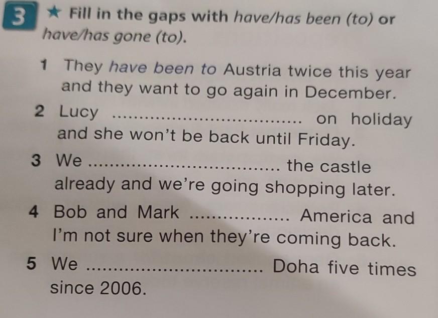 2 has gone 3 have been to 4 have gone to 5 have been to