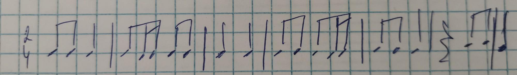 тут в конце не хвататет одной четверти, но по примеру затактов нет, так что не знаю, что с послденим тактом, но остальное группируется так