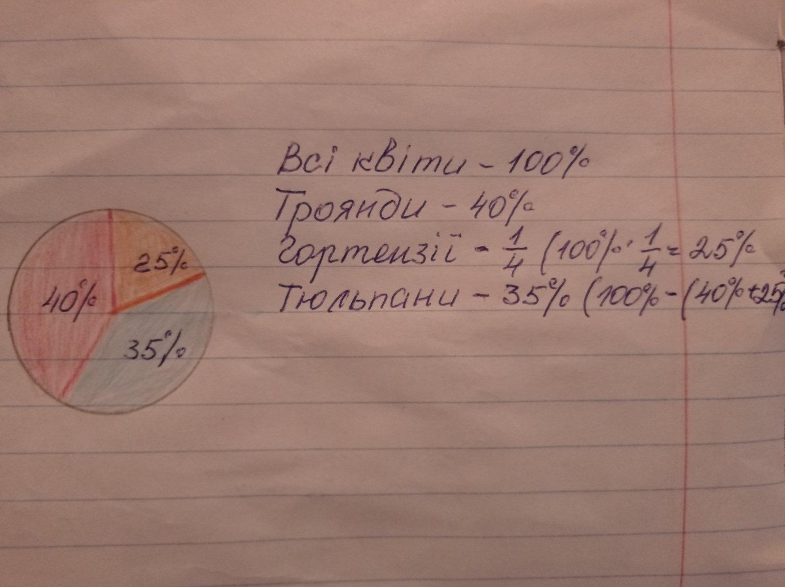 В оранжереї 40% місткості зайнято трояндами, ¼ - гортензіями, а решта – тюльпанами.