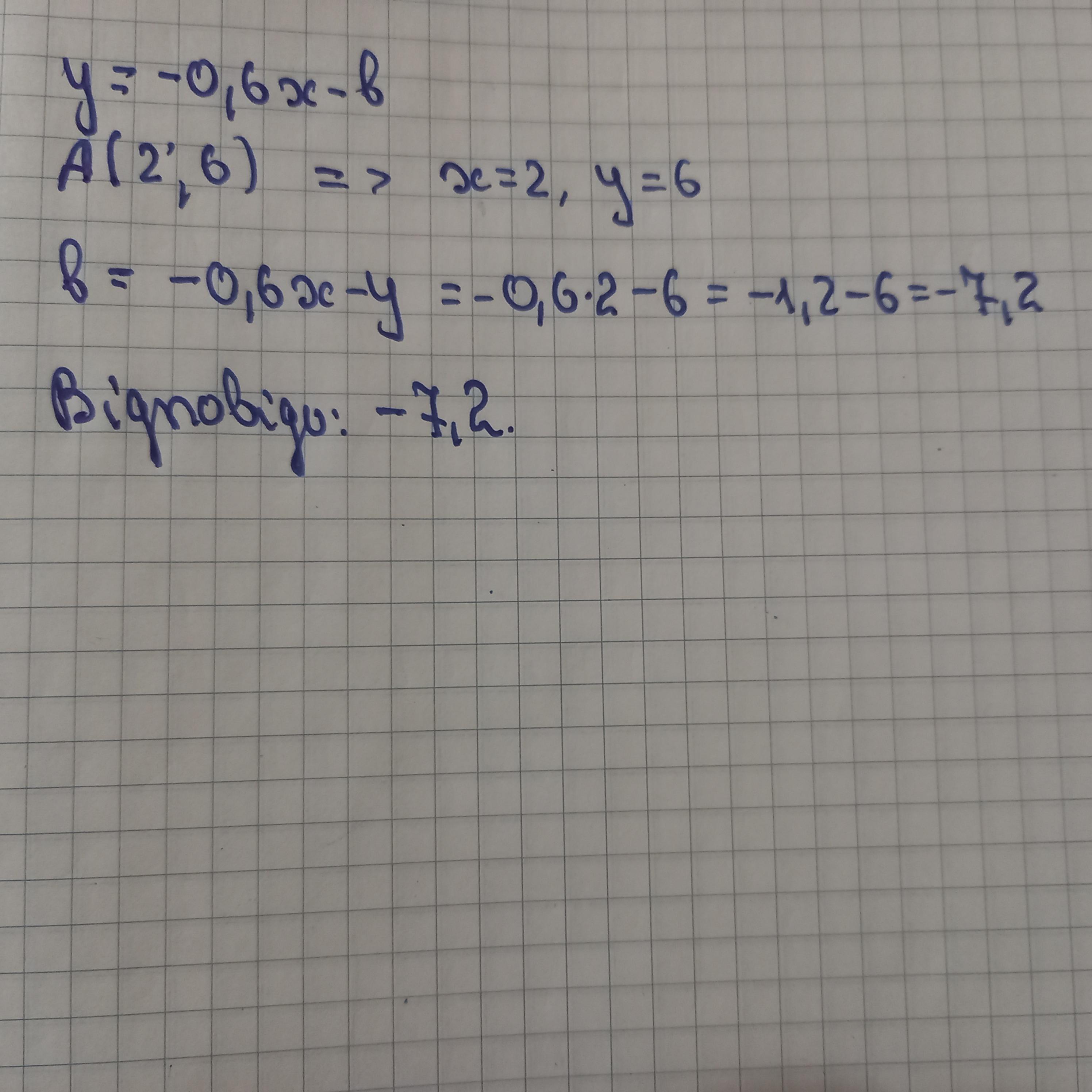 1) графік функції у= -0,6x - b належить точка А(2; 6)
