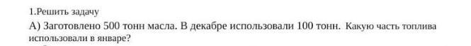 Заготовлено 500 тонн масла. В декабре использовали 100 тонн. Какую часть топлива
