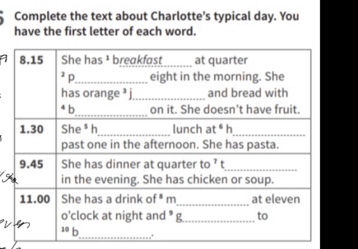 Complete the text about Charlotte's typical day. You