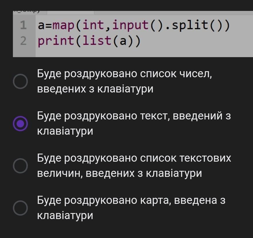 Наприклад, якщо користувач введе рядок "1 2 3 4", то результатом виконання коду буде список