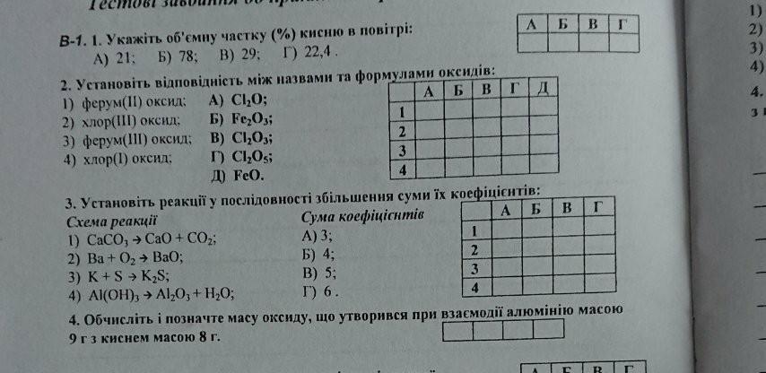 3) 1Б, 2В, 3А, 4Г