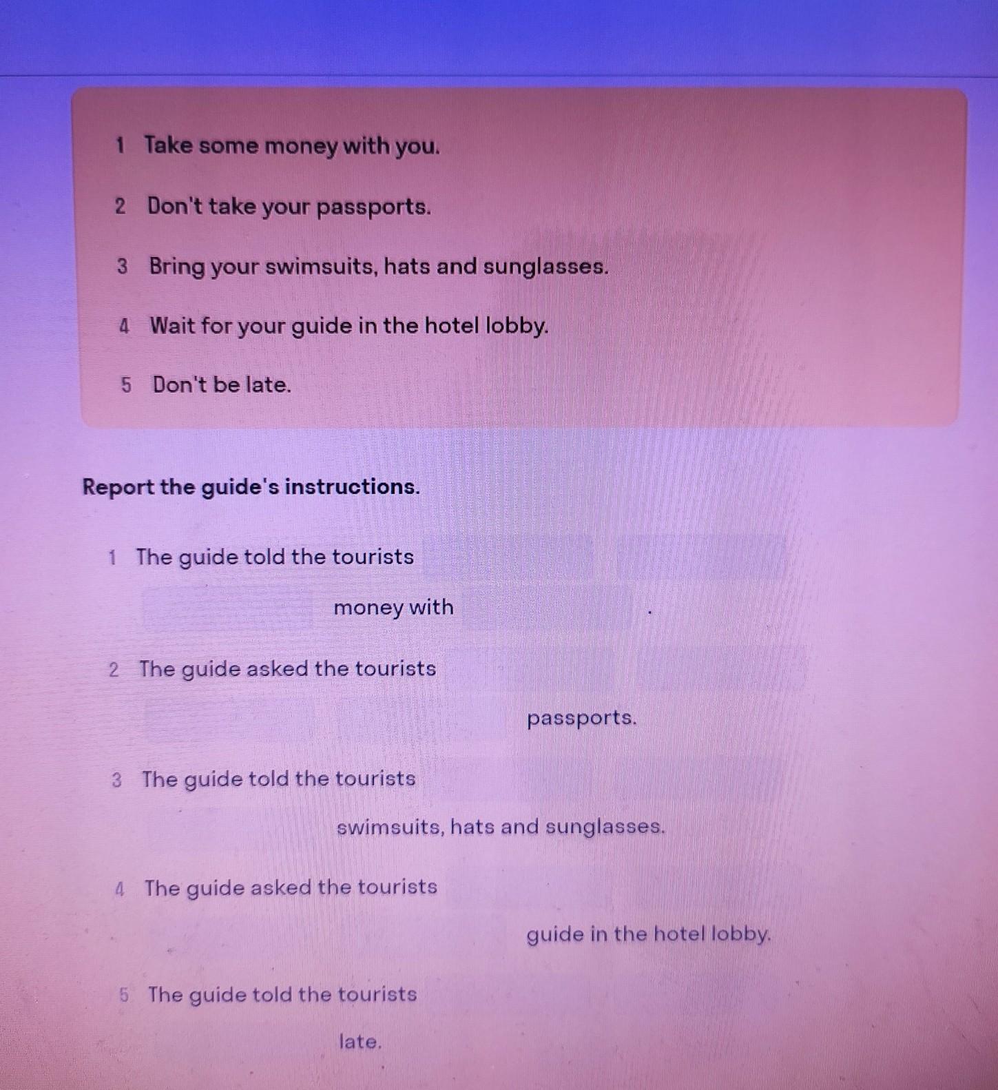 The guide instructed the tourists to bring their swimsuits, hats, and sunglasses.