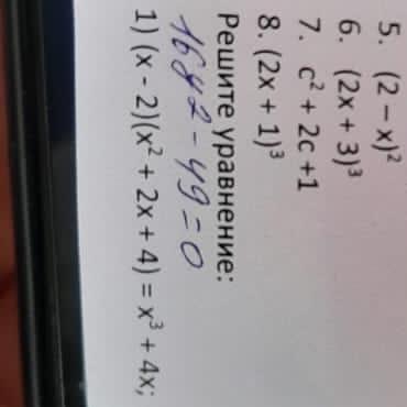 1) (x - 2)(x² + 2x + 4) = x³ + 4x; Пожалуйста пожалуйста пожалуйста