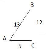 √(5²+12²)=13 cм; sin∠A=12/13=0,923; cos∠A=5/13=0,385.