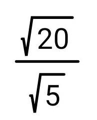 \displaystyle\bf\\\frac{\sqrt{20} }{\sqrt{5} } =\sqrt{\frac{20}{5} } =\sqrt{4}=\sqrt{2^{2} }  =2