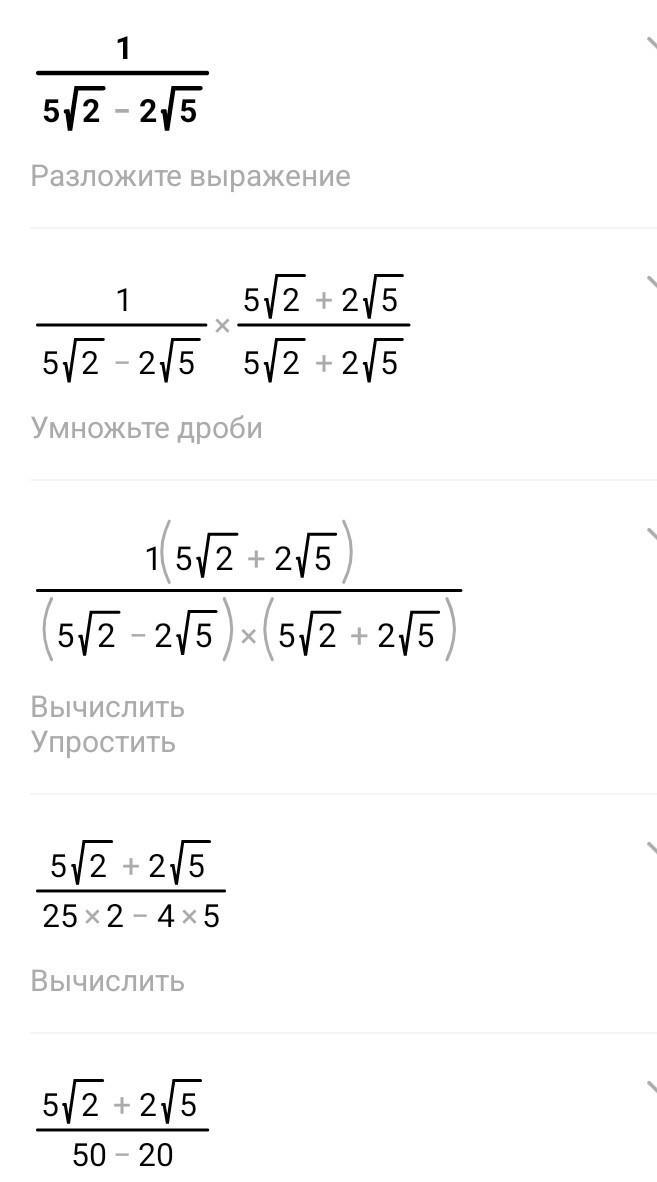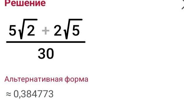 Ответ: дроби зверху 5 в корені 2+2 в корені 5 знизу 30