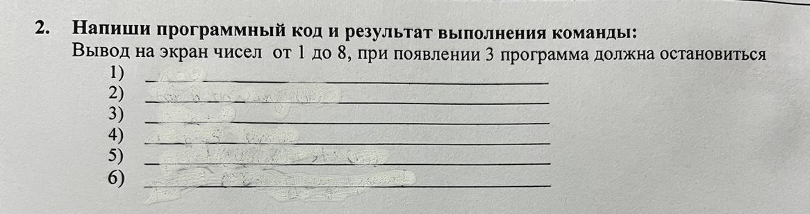 Вывод на экран чисел от 1 до 8, при появлении 3 программа должна остановиться