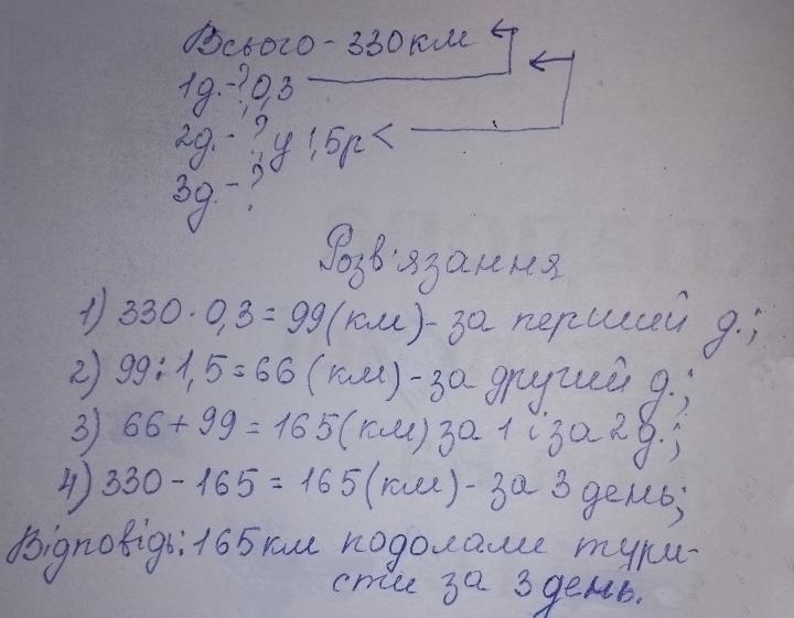 Покрокове пояснення: 1день 30% 2 день в 1.5 більше тоьто 45%