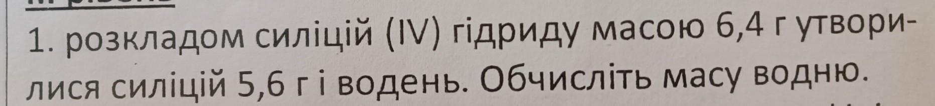 III РІВЕНЬ 1. розкладом силіцій (IV) гідриду масою 6,4 г утвори- лися силiцiй 5,6 г і водень. Обчисліть масу водню.