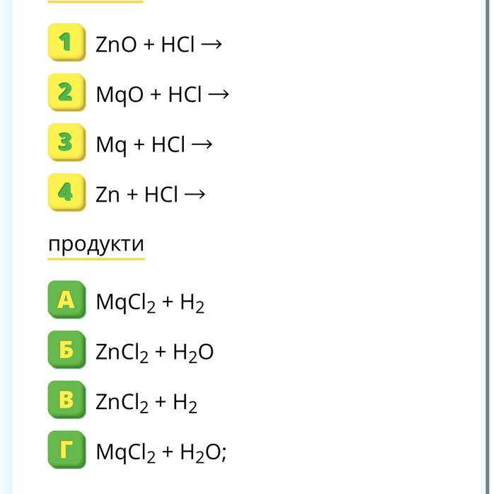 Реагент 1: ZnO + HCl → ZnCl₂ + H₂O