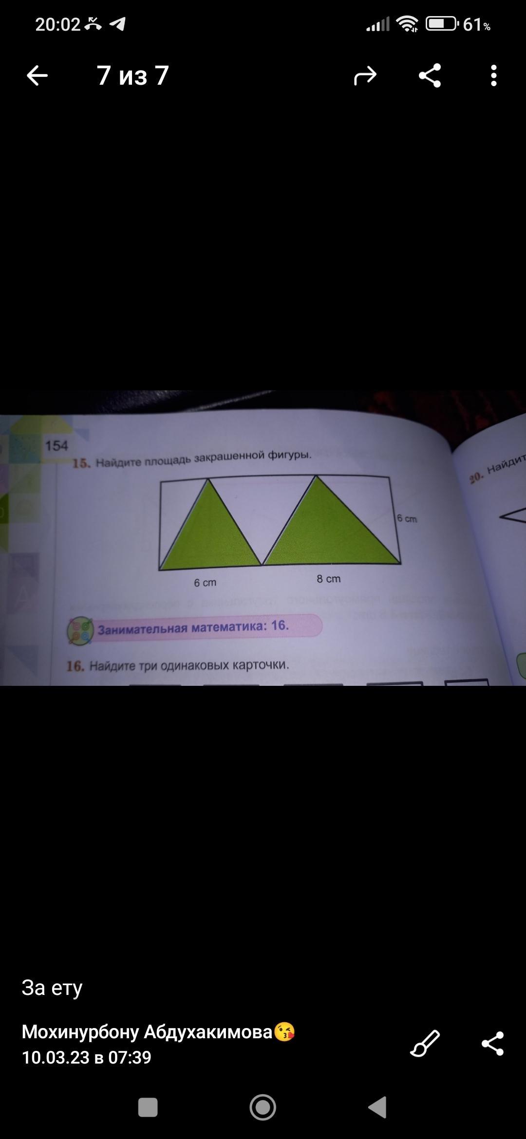 Площадь закрашенной фигуры - тоже самое что и сумма площадей двух треугольников
