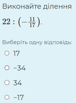 ответ -34, при делении вторая дробь переворачивается, а потом 11 и 22 сократить можно