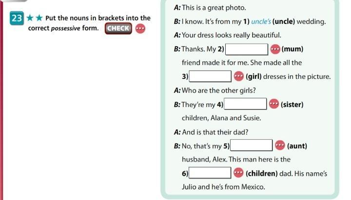 B: Thanks. My mum's (mom) friend made it for me. She made all the girls' (girl) dresses in the picture.